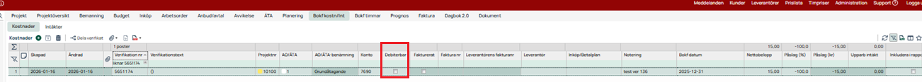 Vi undrar om det går att via Next api styra så att en kostnadsrad inte går att markera för debiterbar och fakturering. Det är viktigt för oss att spärra möjligheten att i Next kunna vidarefakturera en preliminärbokad faktura från vårat ekonomisystem, det är enbart definitivbokade fakturor som ska kunna vidarefaktureras. Således behöver vi via Next API kunna signalera om en faktura ska kunna markeras för debiterbar och fakturering