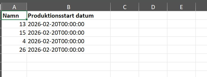 Denna delen behöver vi sedan för att exportera in det i deras tidsregistreringssystem, men när vi exporterar det till excel så får vi någon helt annan info: